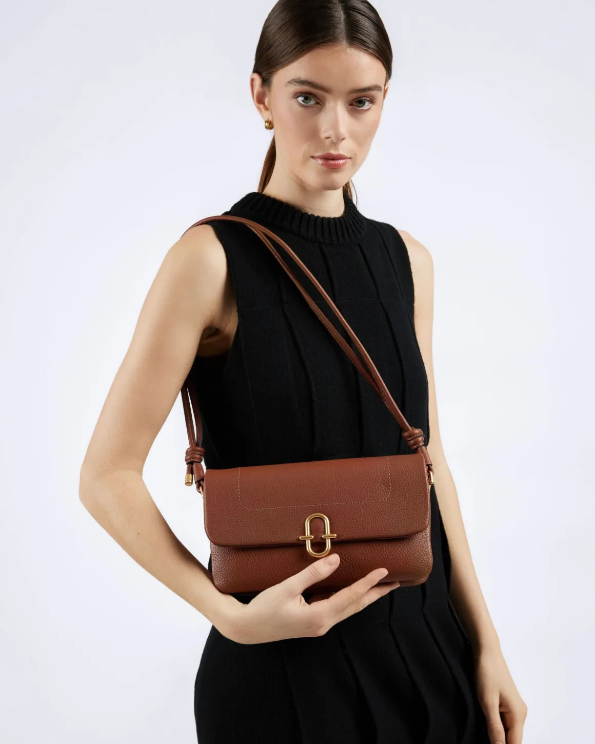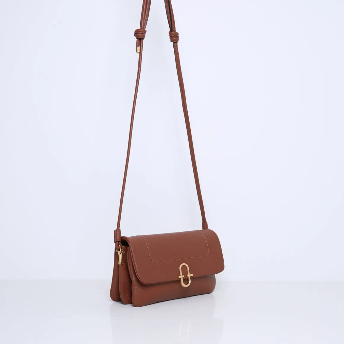 De bevestiging van de leren band is geknoopt met een vindingrijke constructie zodat je deze gemakkelijk kunt verstellen naar de gewenste lengte van 80 tot 140 cm. Als schoudertas heeft deze een shoulderdrop van 37 cm.