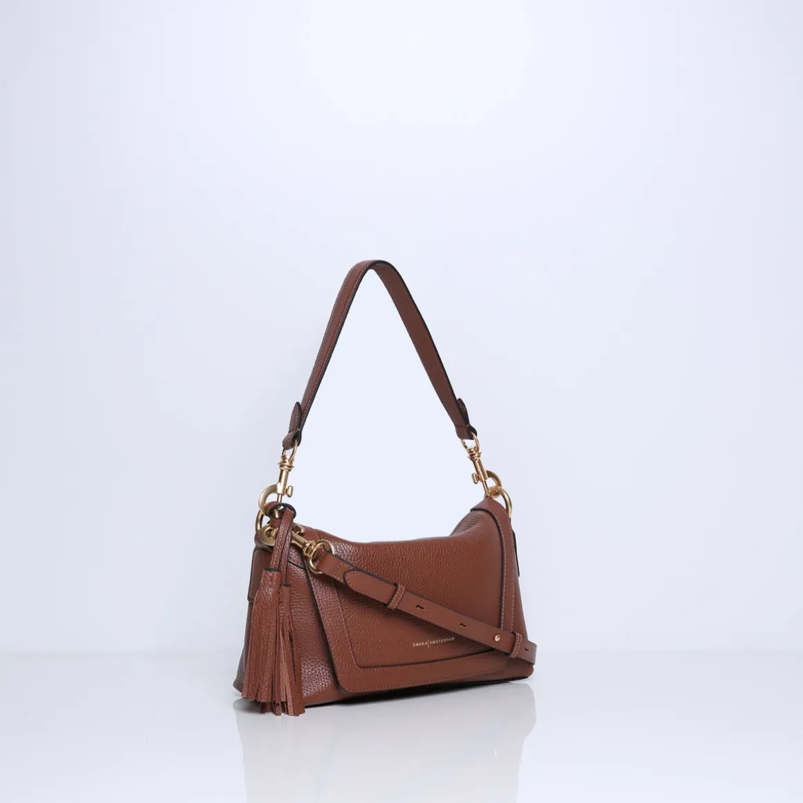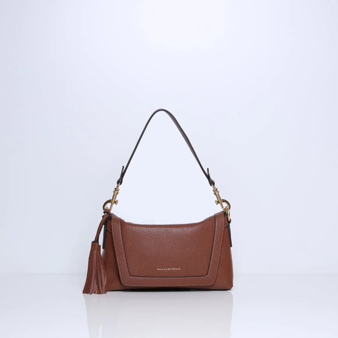 Beschikt over meerdere binnenvakjes en is gevoerd met suedine (viscose) materiaal. De tas heeft een korte leren schouderband en een lange leren crossbody band waardoor deze multi-inzetbaar wordt.