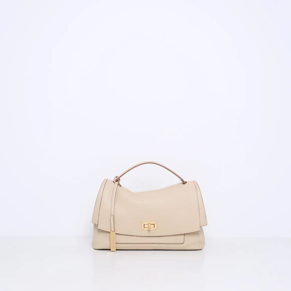 De IDA is een vrouwelijke en klassieke handtas. Met de goudkleurige draaisluiting aan de voorkant geeft de soepele vorm van de tas een elegante twist. In de IDA passen al je essentials, maar er past ook net iets meer in zoals een flesje water of een opvouwbare paraplu.