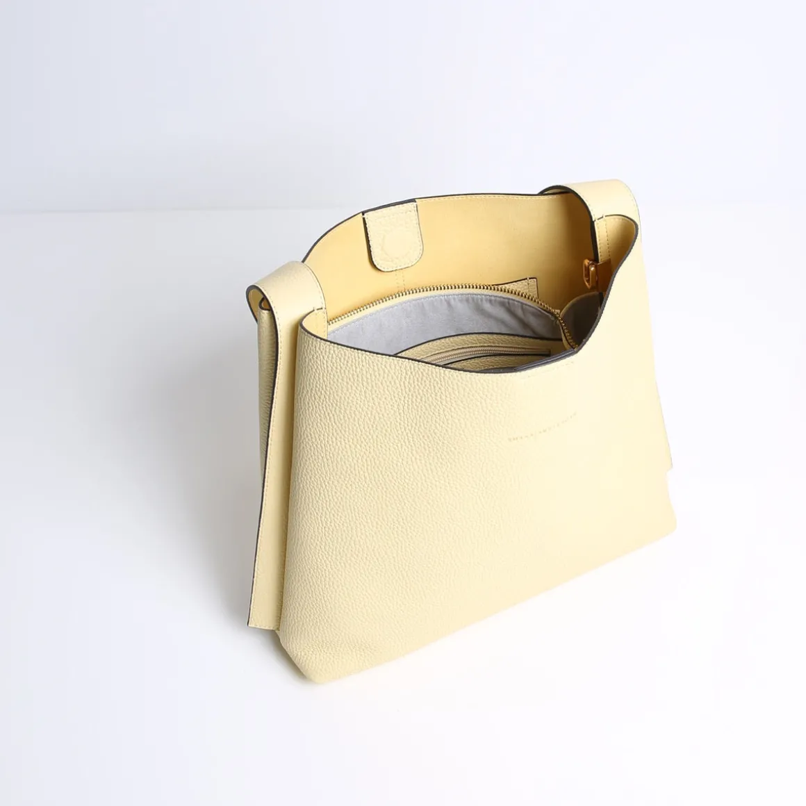 De PAMELA overtreft het tijdloze klassieke ontwerp van een shopper door de afwerking van soepel leer en fijne details aan de buiten- en binnenkant. Uniek aan dit ontwerp is dan ook het brede leren hengsel wat doorloopt aan de zijkanten, afgewerkt met een subtiele magneetsluiting in het leer aan de bovenkant. Je draagt deze comfortabel op de schouder met een shoulderdrop van 25 centimeter.