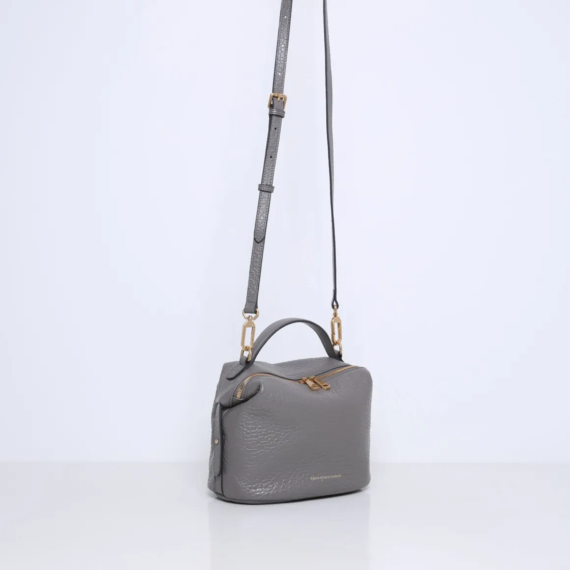 De tas is gemaakt van stevig rundleer met een reliëfpatroon van olifantenhuid. Beschikt over meerdere binnenvakjes en is gevoerd met suedine (viscose) materiaal. Met de afneembare, verstelbare leren schouderband kun je deze handtas op meerdere manieren dragen.