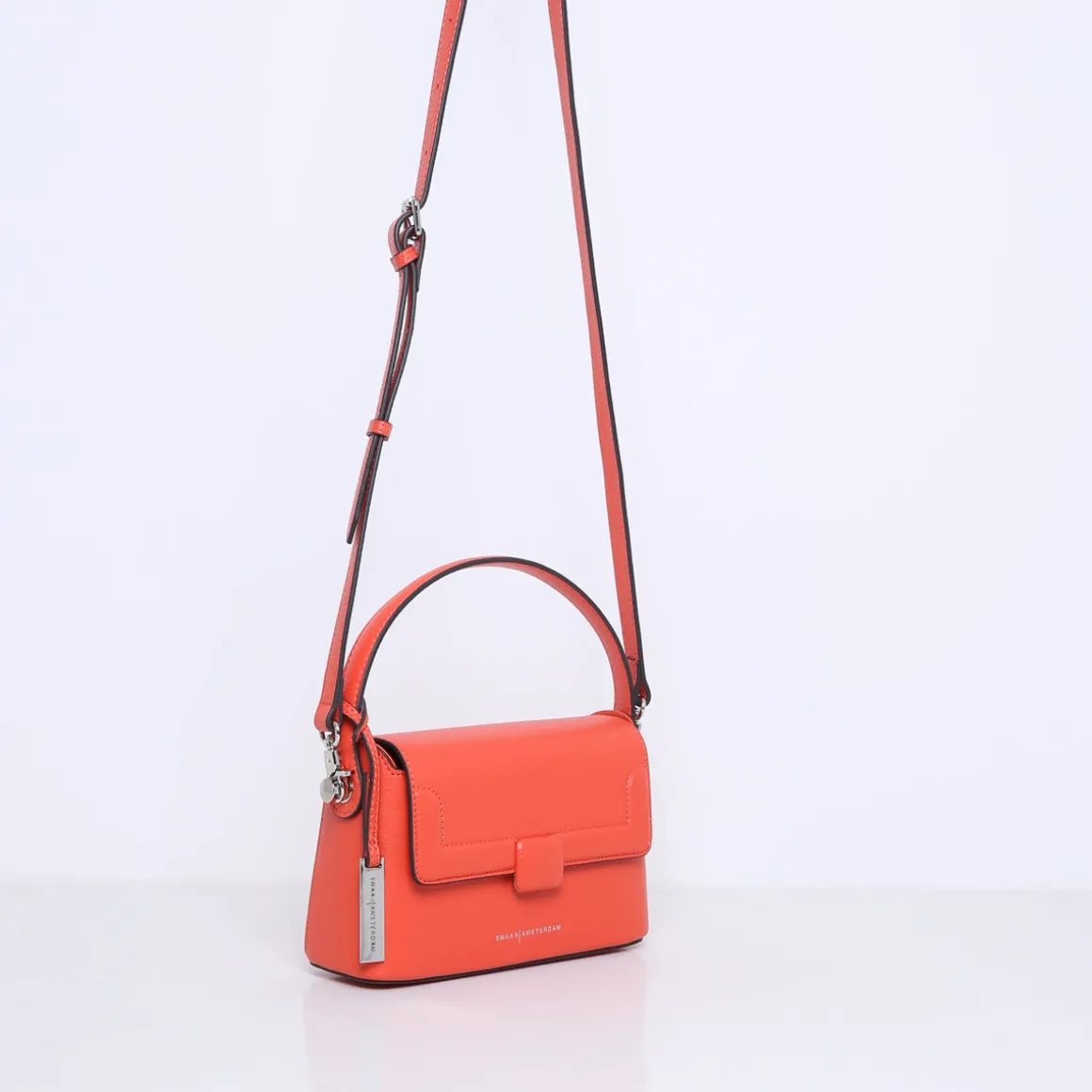 De ALAN heeft een kort handvat welke naar achteren kan worden gezet en een afneembare leren crossbody band. De handtas gaat aan de voorkant open met een magneetsluiting. Er is genoeg ruimte voor al je essentials zoals een telefoon, portemonnee, (zonne)bril en sleutels. Door de rechthoekige en open vorm kun je makkelijk en overzichtelijk bij je spullen.