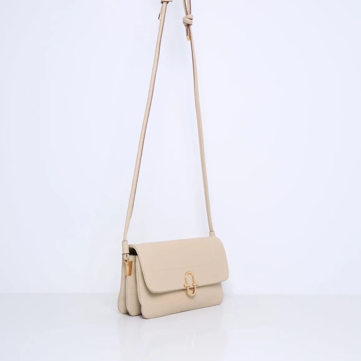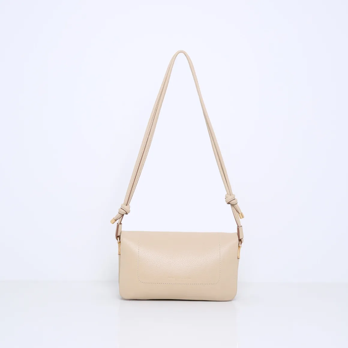 De bevestiging van de leren band is geknoopt met een vindingrijke constructie zodat je deze gemakkelijk kunt verstellen naar de gewenste lengte van 80 tot 140 cm. Als schoudertas heeft deze een shoulderdrop van 37 cm.