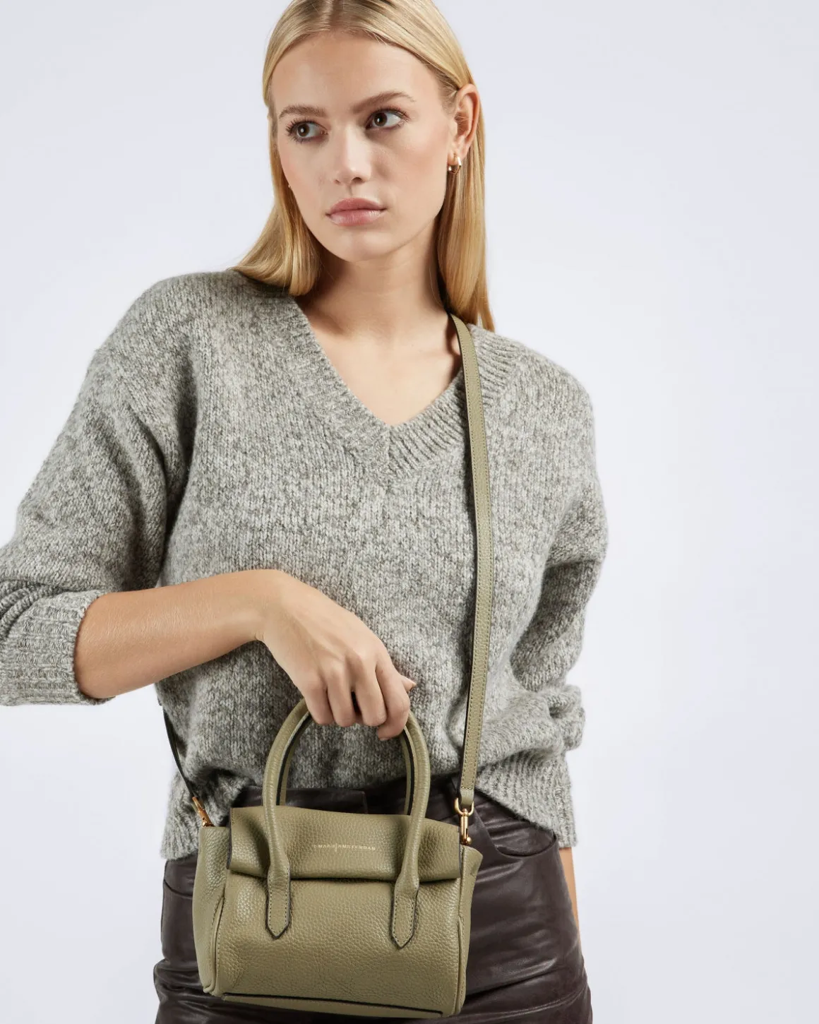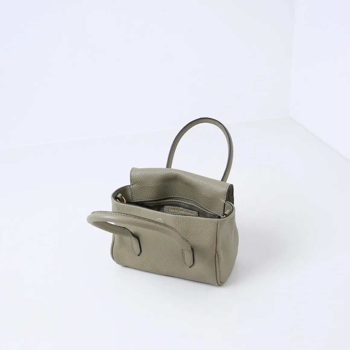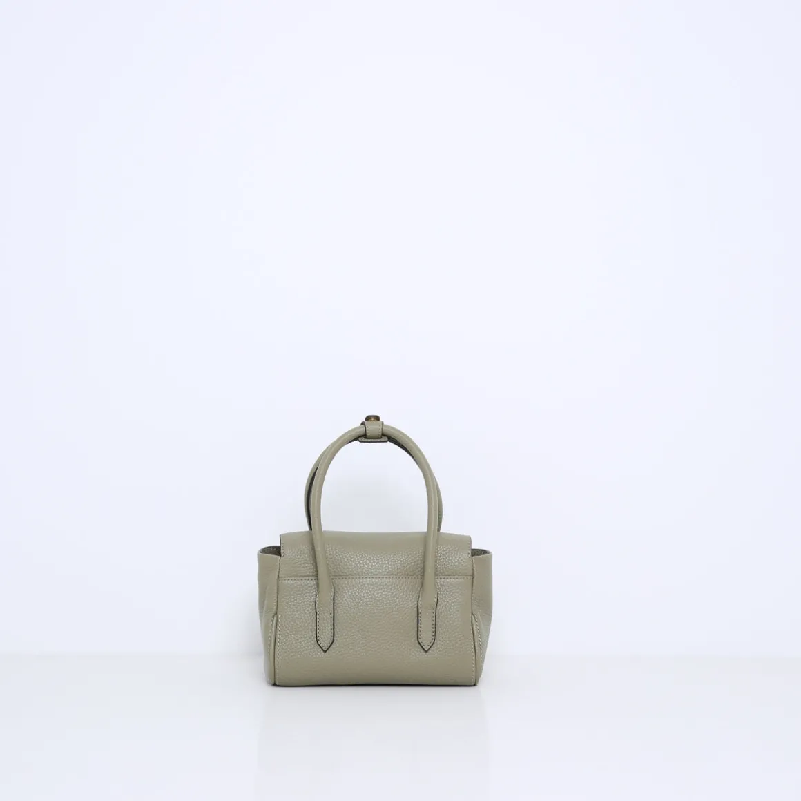 De BARBRA mini tote bag is een elegante handtas met een unieke magneetsluiting aan de bovenkant afgewerkt in het leer. De tas heeft een dubbel handvat, wat bij elkaar gehouden kan worden door een drukknoopje.