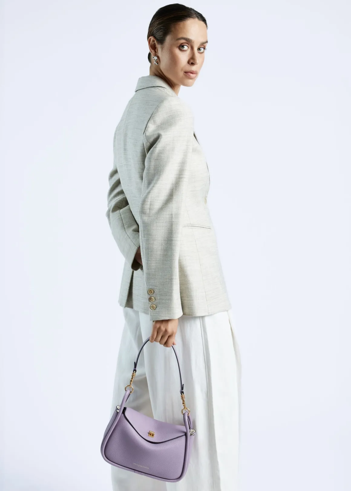 Uniek aan het design is de leren afwerking van de hengsels wat doorloopt aan de voor- en achterkant van de tas. Je kunt het korte handvat eraan bevestigen om als schoudertas te dragen of het lange hengsel om deze crossbody te kunnen dragen. De tas gaat open aan de bovenkant gesloten met een elegante externe schuifsluiting.