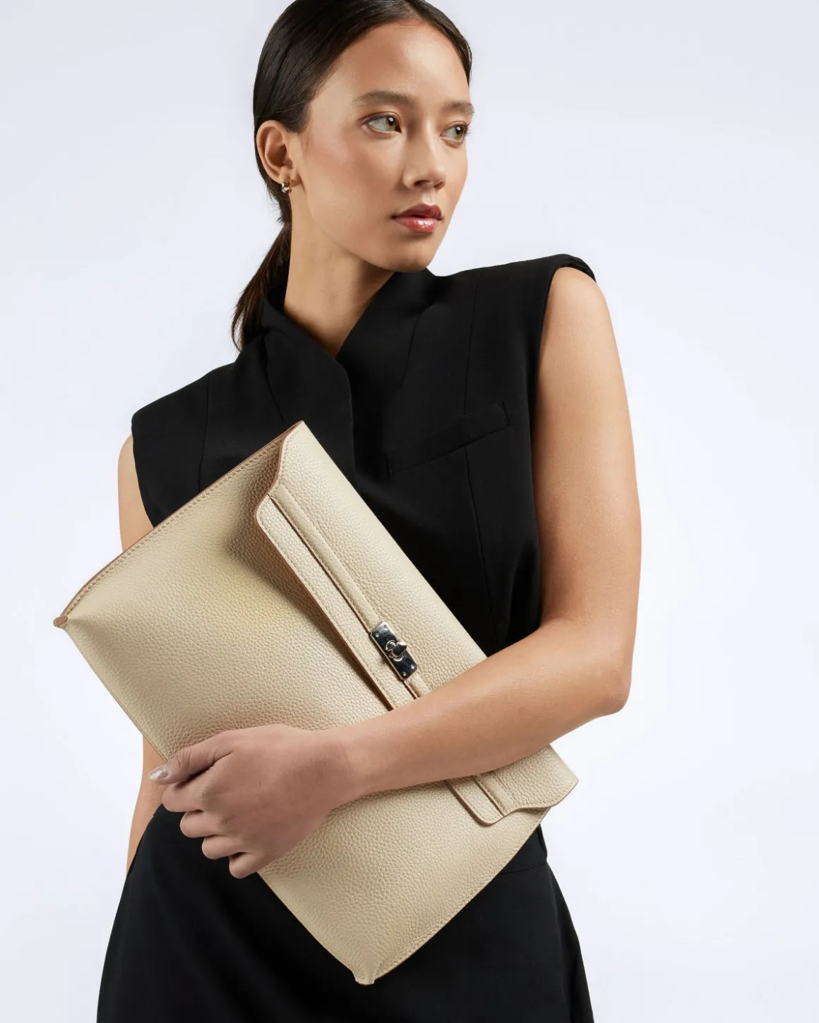 De COLE is een leren unisex envelopvormige pouch. Deze accessoire heeft een minimalistische uitstraling, terwijl deze toch functioneel is voor het dragen van essentiële spullen. De pouch heeft geen schouderriem en is bedoeld om in de hand of onder de arm te dragen. Deze kan gemakkelijk worden vastgehouden of in een grotere tas worden geplaatst.