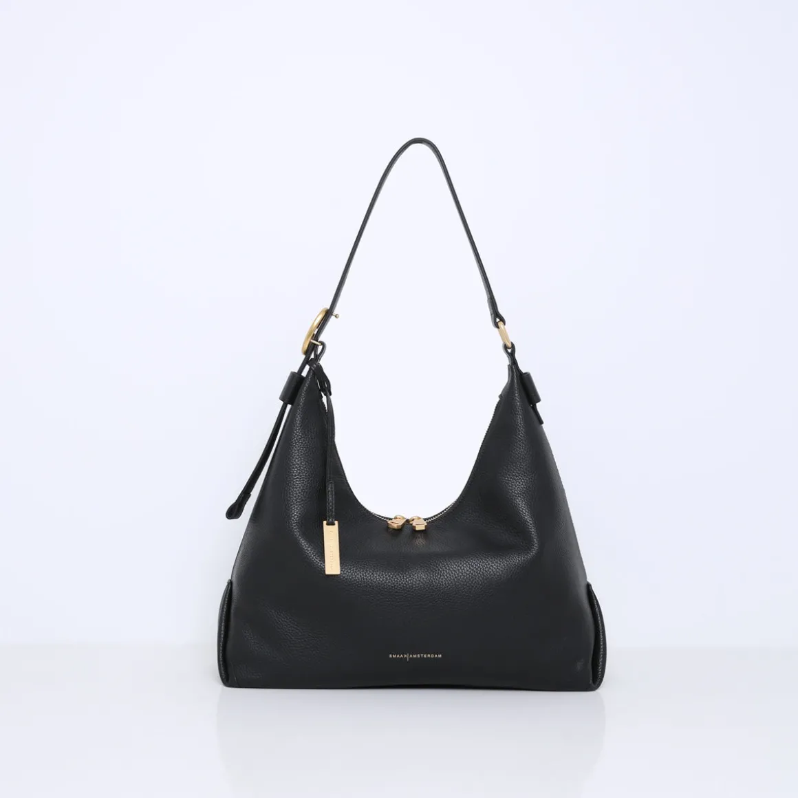De ELKE hobo schoudertas combineert klassieke elegantie met moderne flair. De tas is ontworpen met een praktische ritssluiting die zorgt voor veiligheid en gemak. Uniek aan het ontwerp is de afwerking aan de zijkanten. Ze zijn zorgvuldig omgebogen en vast gestikt aan de zijkant wat een eigentijds en opvallend element toevoegt aan het design. De ELKE geeft een verfijnde en modieuze uitstraling.