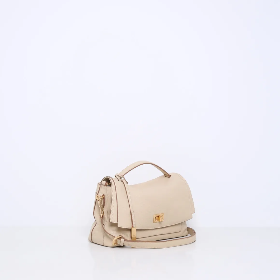 De IDA is een vrouwelijke en klassieke handtas. Met de goudkleurige draaisluiting aan de voorkant geeft de soepele vorm van de tas een elegante twist. In de IDA passen al je essentials, maar er past ook net iets meer in zoals een flesje water of een opvouwbare paraplu.