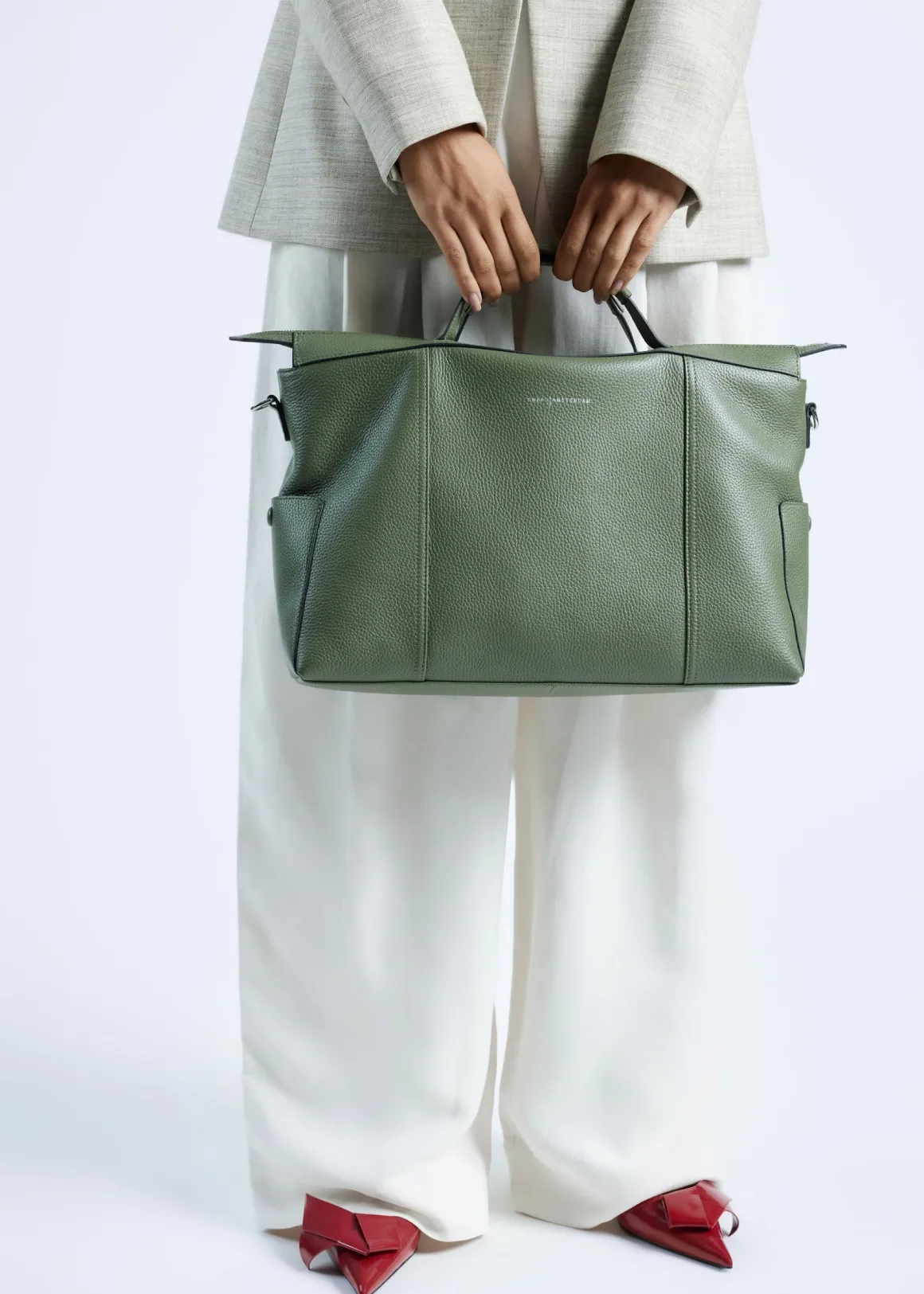 De IKE is een veelzijdige leren werktas met veel opbergvakjes. Ideaal voor professionals die op zoek zijn naar een elegante en functionele tas. De tas heeft twee handvatten om gemakkelijk in de hand of over de arm te dragen. Daarnaast beschikt deze over een afneembare en verstelbare leren schouderriem.