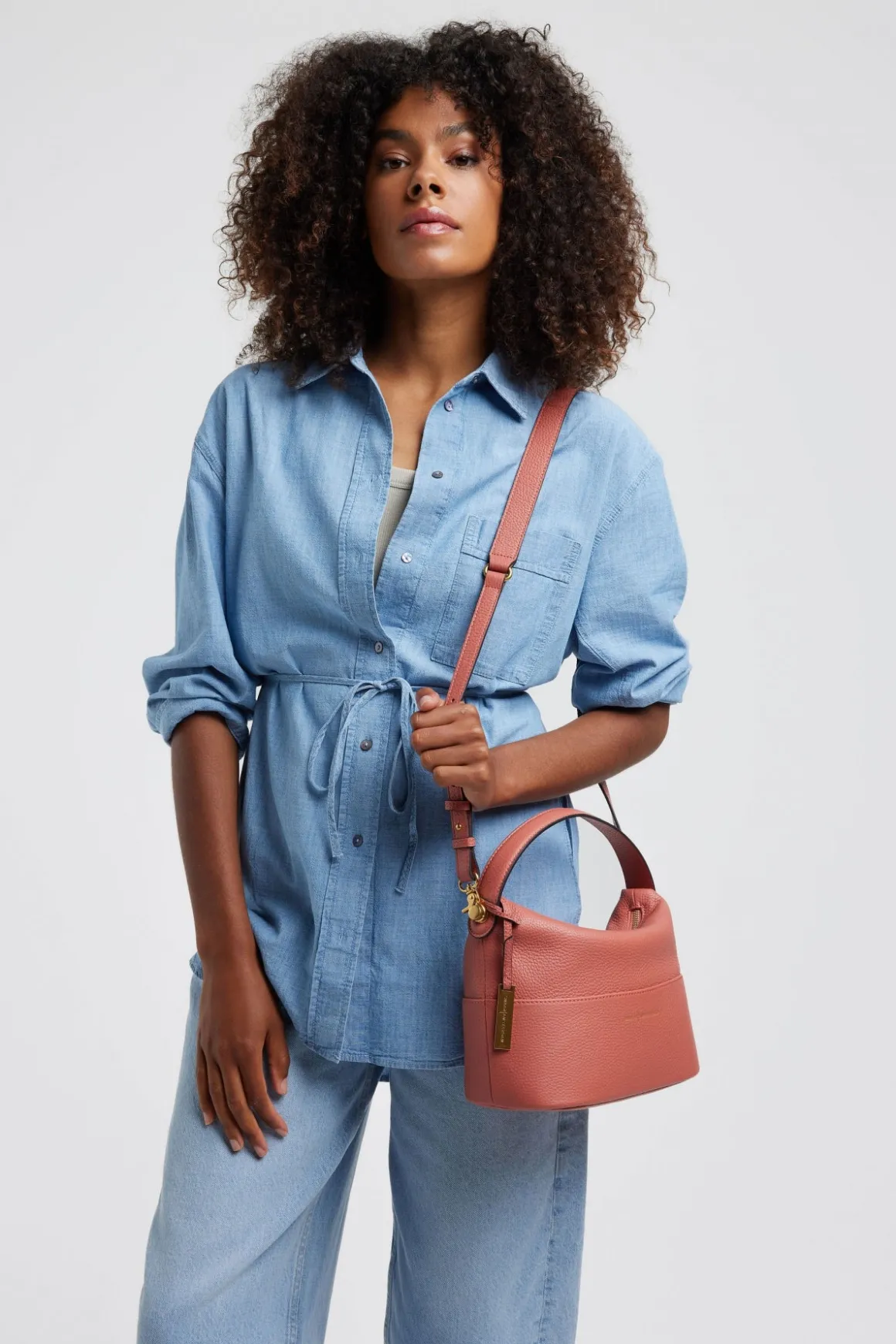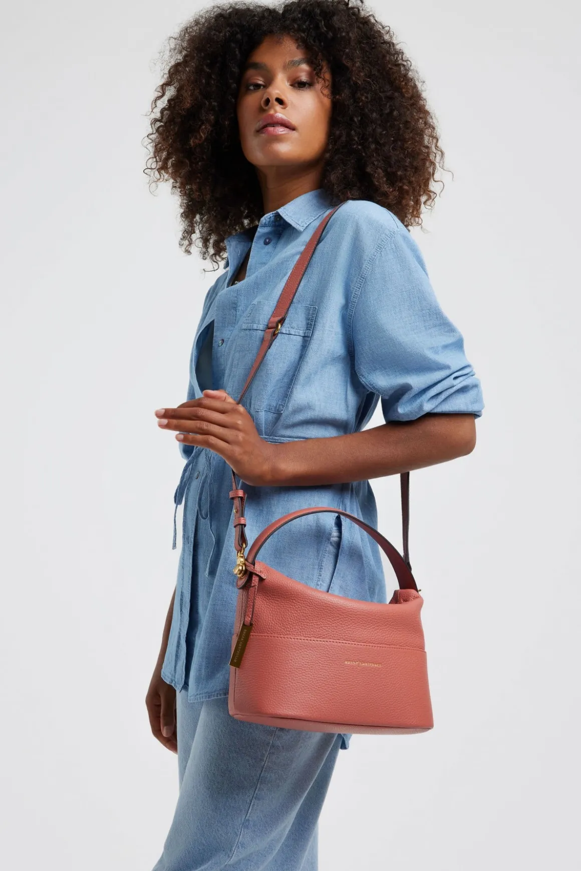 De KIM crossbody tas is sportief en elegant tegelijkertijd. Door het korte handvat en afneembaar lange leren hengsel heeft het model een speels effect geschikt voor iedere gelegenheid. De KIM kan als schoudertas of als crossbody tas gedragen worden.