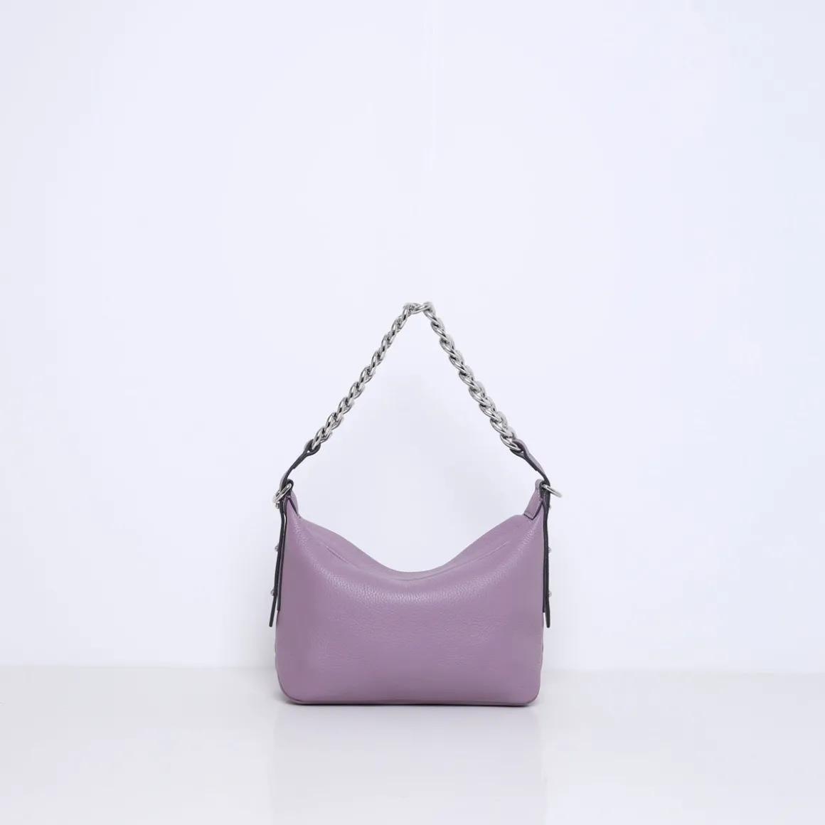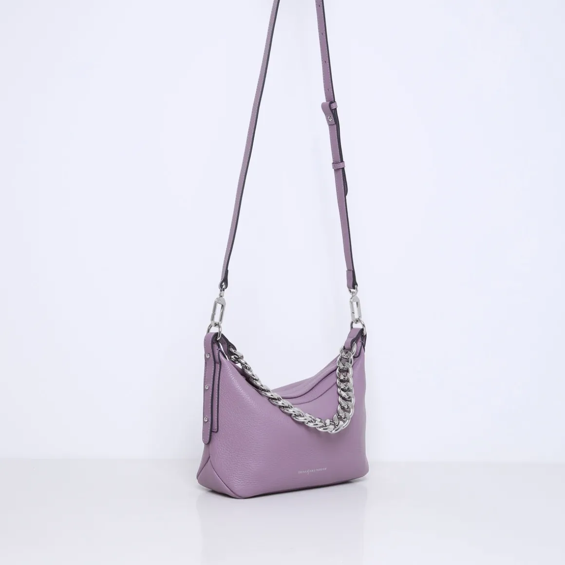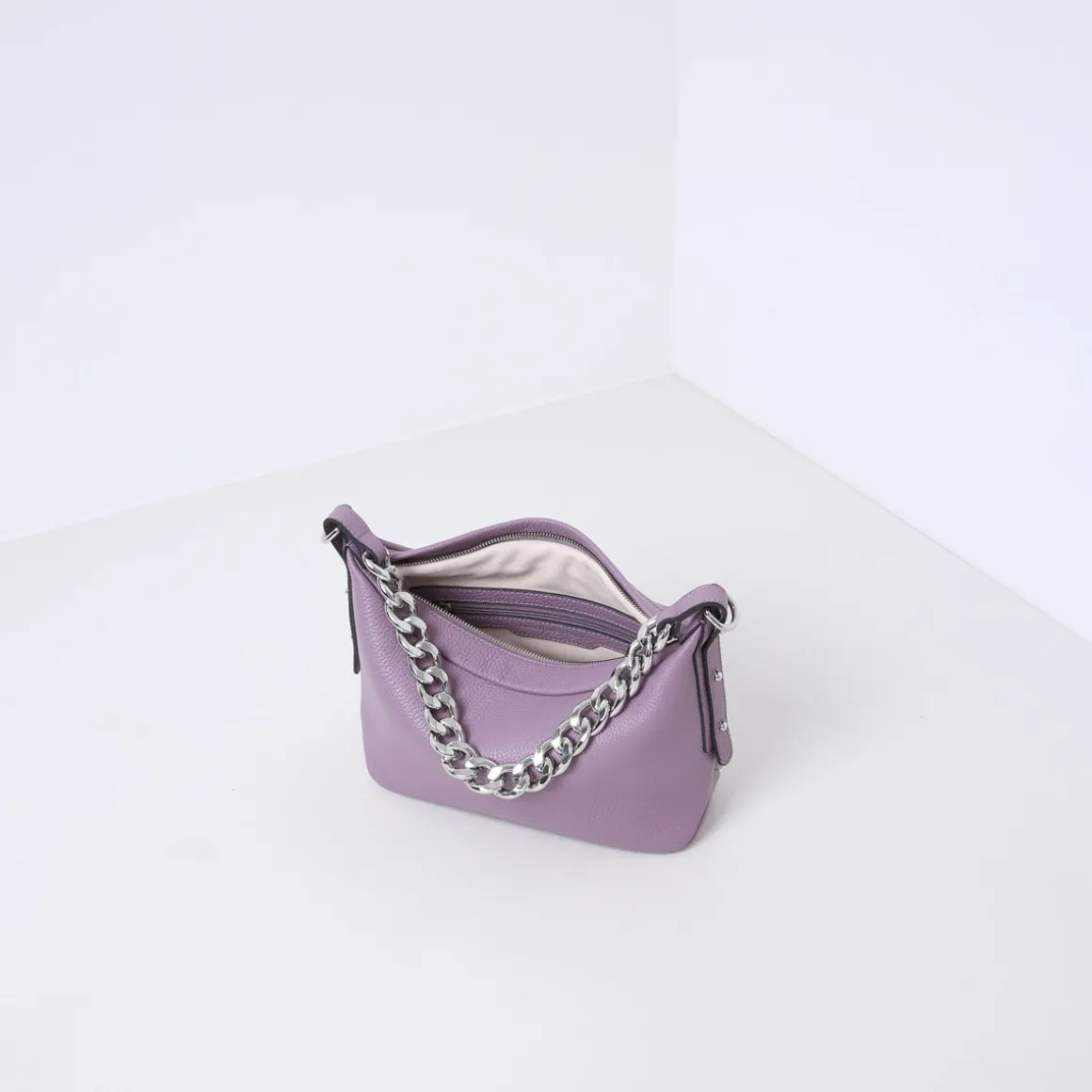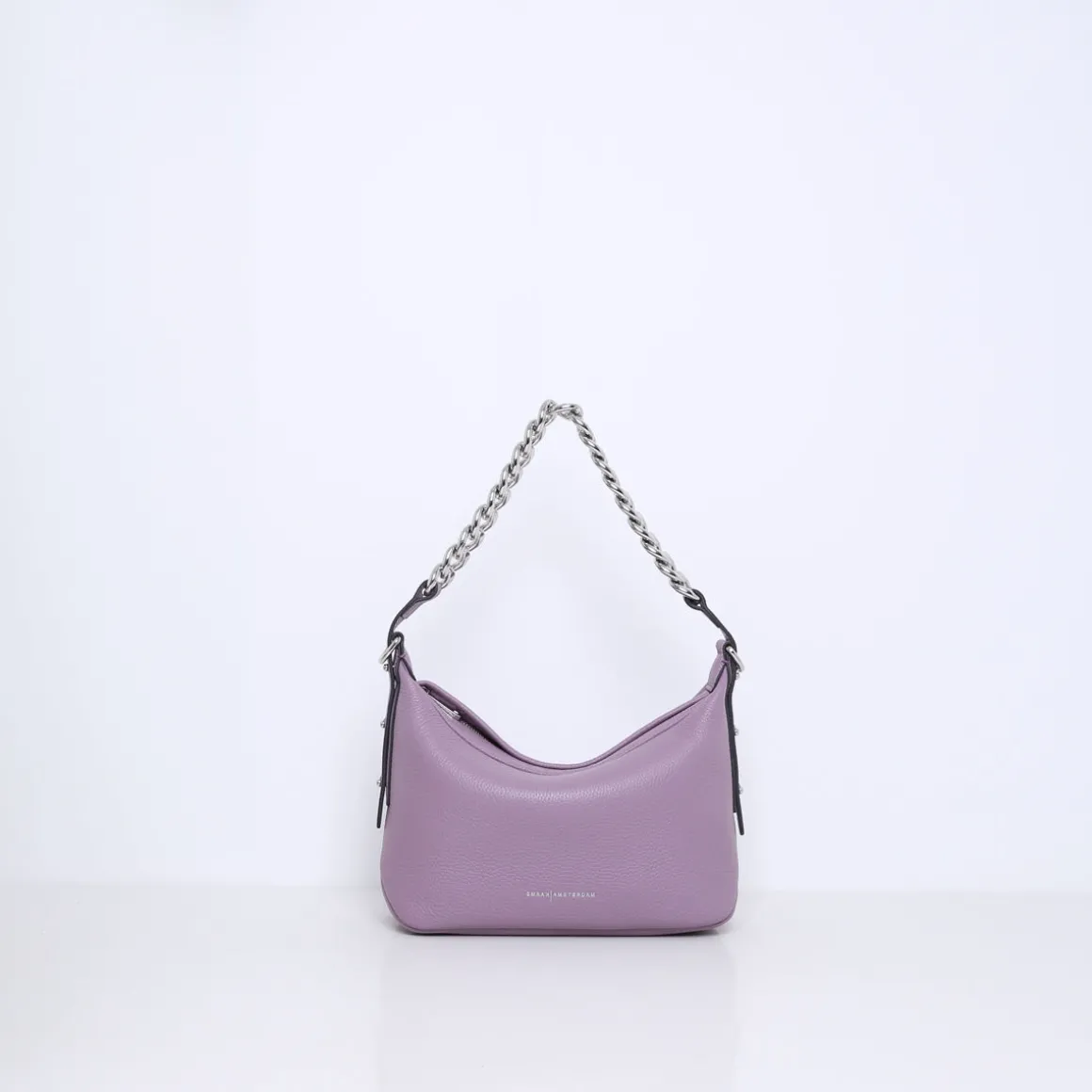 De LOTTE is een simplistische mini hobo tas met stoere afwerkingen. Geschikt als schoudertas, maar kan ook crossbody worden gedragen. De oversized zilverkleurige ketting geeft het ontwerp een onverwachte elegante uitstraling met gevoel voor design.