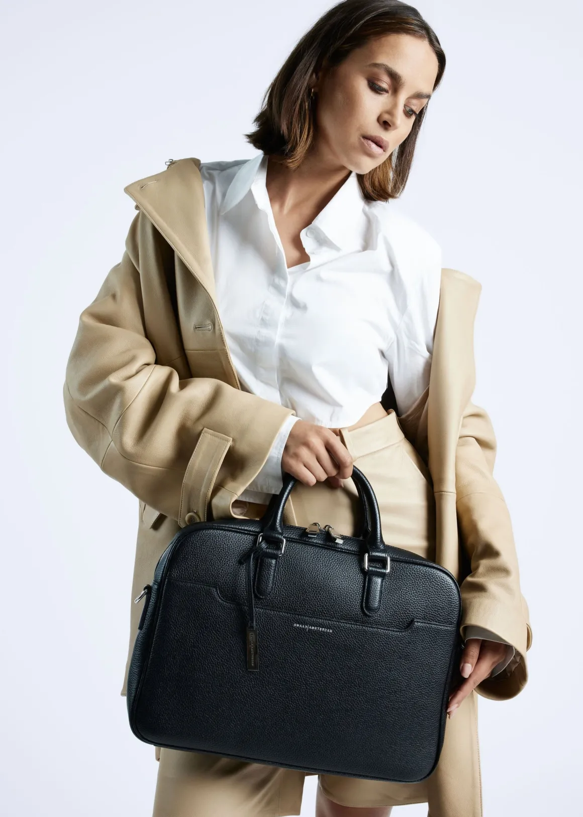 De tas biedt voldoende ruimte om laptops tot maximaal 15 Inch veilig op te bergen samen met extra vakken en compartimenten voor het organiseren van documenten, notitieboekjes, pennen en andere accessoires. De tas is gemaakt van zacht en soepel rundleer. Beschikt over meerdere binnenvakjes en is gevoerd met suedine (viscose) materiaal. Met de afneembare, verstelbare schouderband kun je deze handtas ook als crossbody tas dragen.