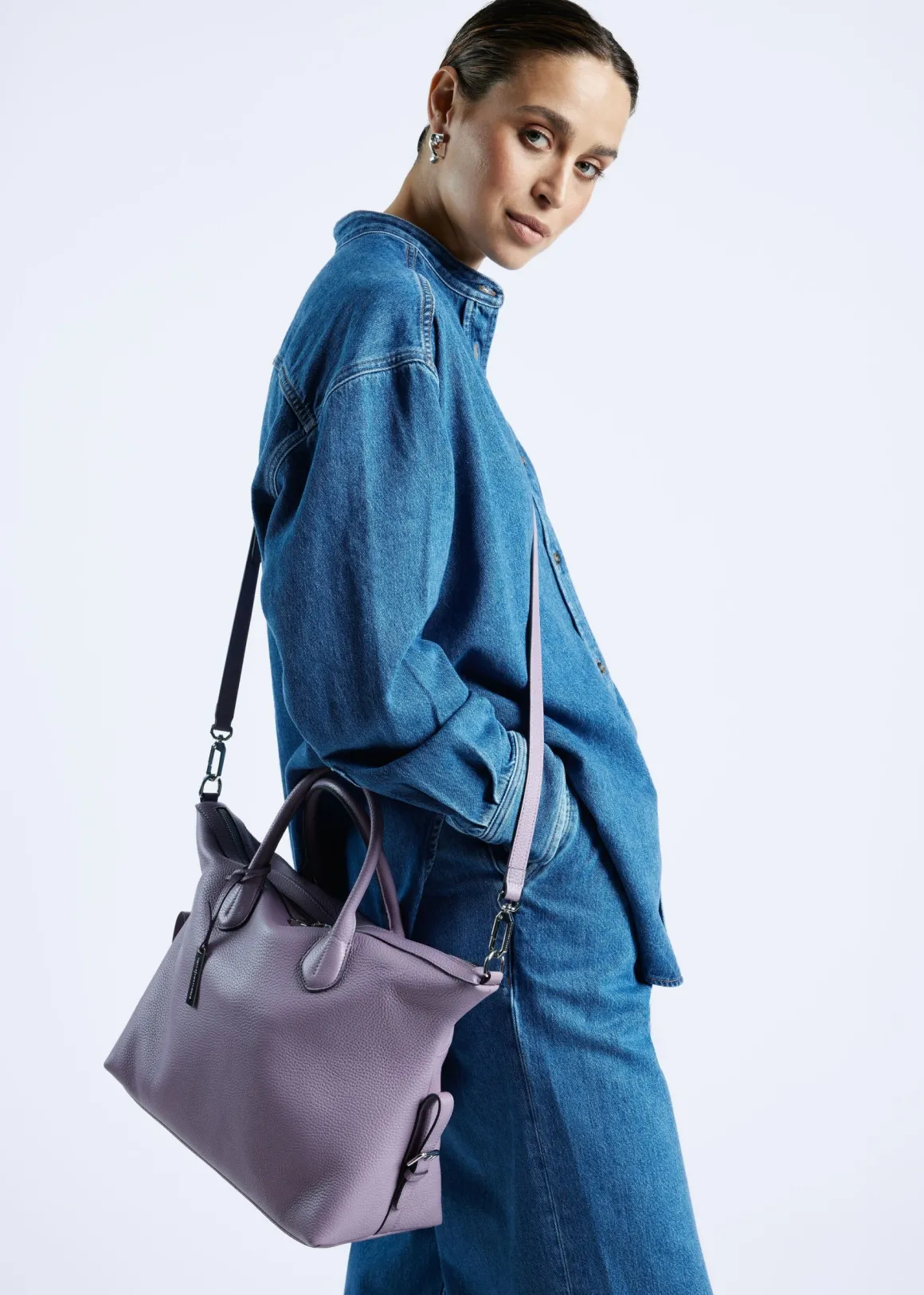 De tas is gemaakt van zacht en soepel rundleer. Beschikt over meerdere binnenvakjes en is gevoerd met suedine (viscose) materiaal. Met de afneembare, verstelbare leren schouderband kun je deze handtas ook als crossbody tas dragen.