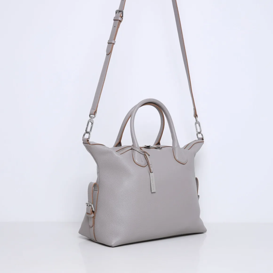 De tas is gemaakt van zacht en soepel rundleer. Beschikt over meerdere binnenvakjes en is gevoerd met suedine (viscose) materiaal. Met de afneembare, verstelbare leren schouderband kun je deze handtas ook als crossbody tas dragen.