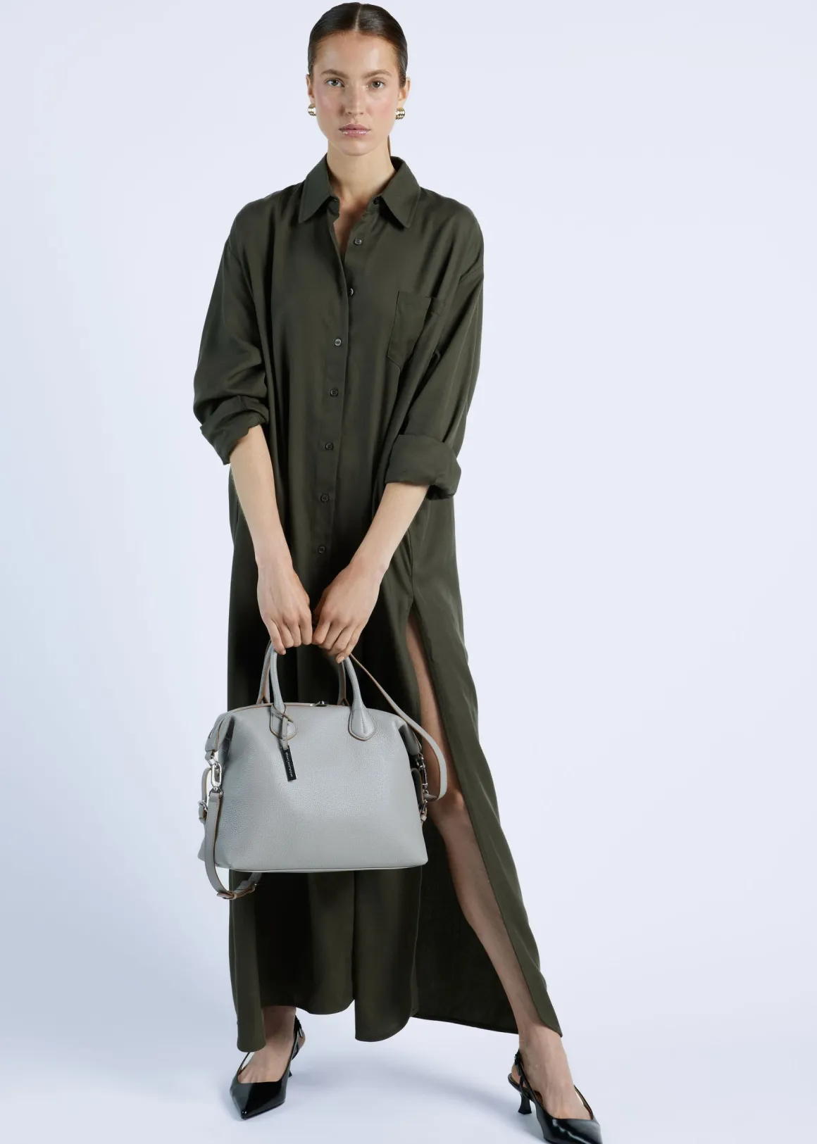 De tas bevat een extra vak met rits aan de achterkant en is volledig gesloten met een rits aan de bovenkant. Unieke details aan dit model zijn de gespen aan de zijkanten die je open of dicht kunt gebruiken om extra ruimte te creëren en speelsheid in design. Zo past er een 13 Inch laptop in wanneer deze open zijn en het model ietwat rechthoekig wordt.